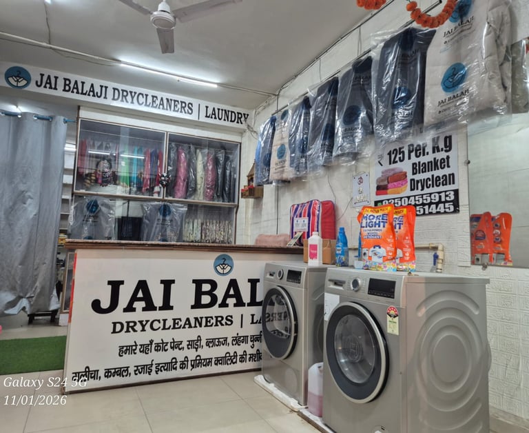 At Jai Balaji Drycleaners & Laundry, we bring over a decade of trusted experience in delivering top-notch dry cleaning and laundry services across Laxmi Nagar. Founded with a passion for quality and customer satisfaction, we have proudly become a household name, known for our meticulous attention to detail, eco-friendly processes, and commitment to excellence..